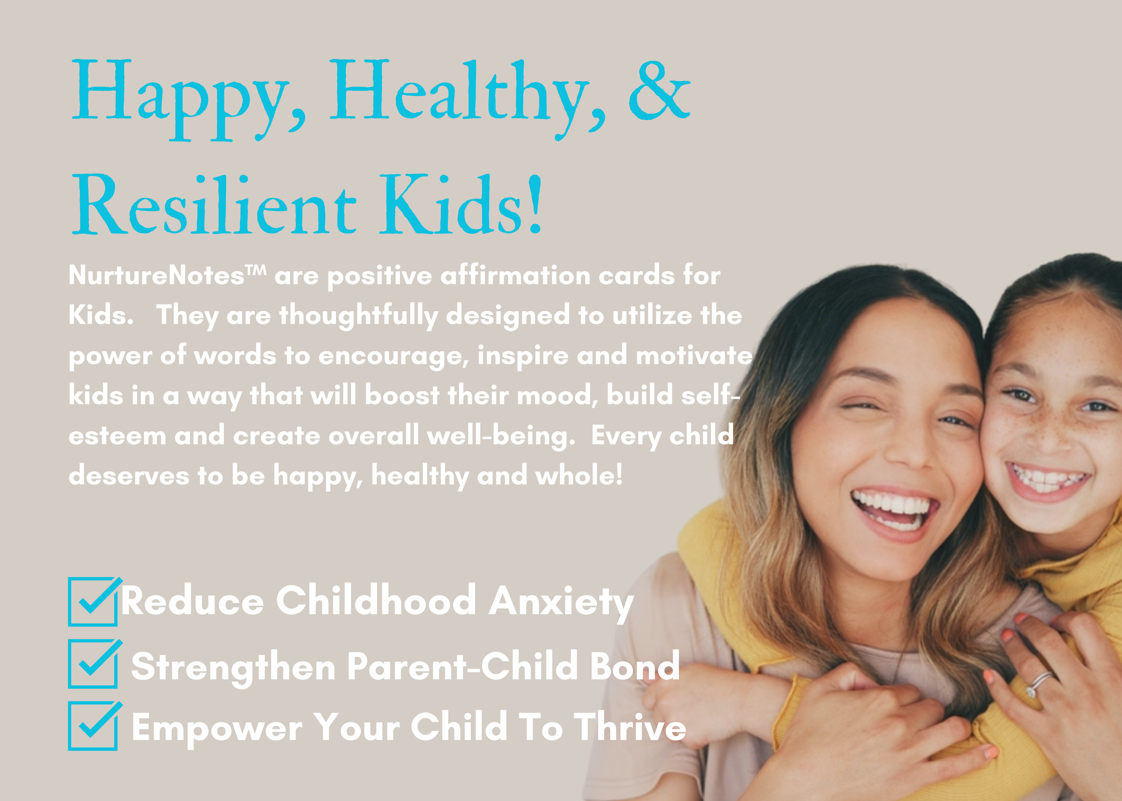 As a Certified Health and Wellness Coach, I understand that today's world comes with its own set of unique challenges for children, from stress and anxiety to pressures in school and social settings. These pressures and stressors in childhood can have detrimental effects on the overall health and wellbeing of children. That's why, at NurtureNotes™ , we're committed to providing tools like our thoughtfully designed NurtureNotes™ cards, with messages that aim to boost self-esteem, foster emotional well-being, and encouraging a growth mindset, all of which have a positive impact on overall health and wellbeing in children. Our children deserve to feel safe, heard and loved at all times".